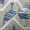 This glamorous embroidery on a beautiful dupioni brings to life the Blues of the Atlantic coast of the Hispaniola. These vases perfectly reflect the pottery tradition of the island. A real beauty.