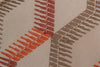 This sophisticated embroidery exhibits a beautiful pattern of vertical zig-zag lines. It is an elegant and extravagant detailed design that combines many colors. It comes in red and brown, and in yellow, grey and white.